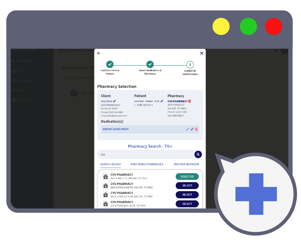 VetHubRx is the FIRST electronic prescribing platform for veterinarians. VetHub Rx connects veterinarians, pharmacies, and software systems through a single, secure platform — allowing prescriptions to be sent instantly, accurately, and compliantly anywhere in the country.